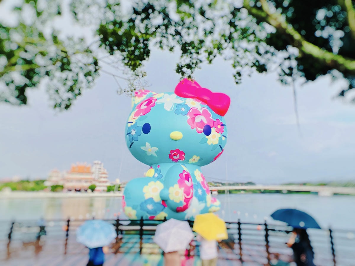 全國最大的「Hello Kitty來作客」水上裝置,龍潭大池盛大開幕啦!! 桃園市政府文化局辦理「桃園地景藝術節」在龍潭大池配合「世界客家博覽會」客庄宣傳,打造了一個高16公尺,穿著客家…